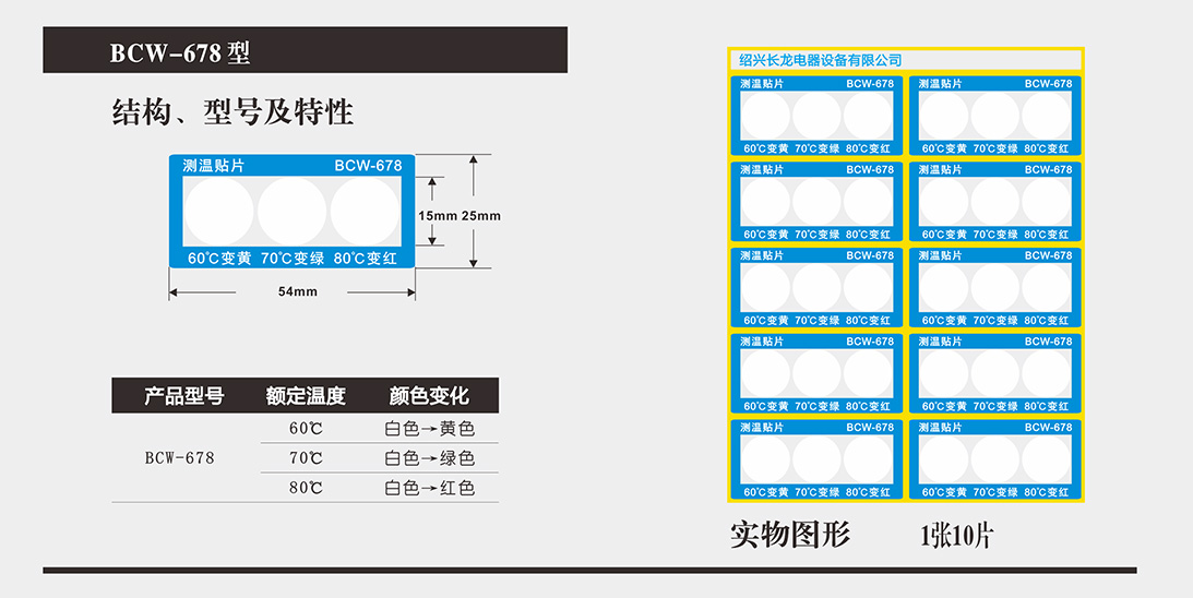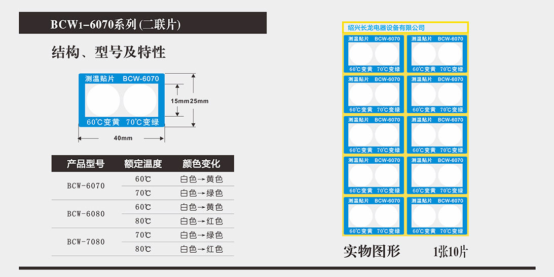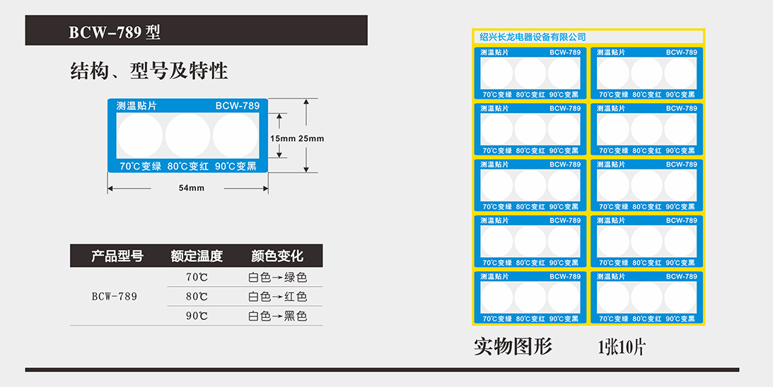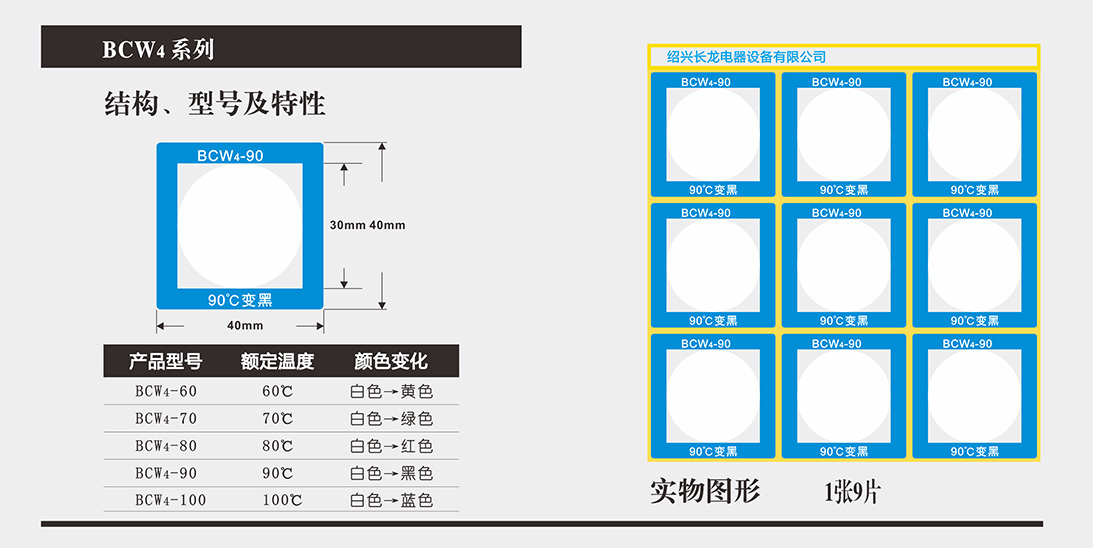 BCW系列測溫貼片,廣泛應用于變電所母線的連接部位,用來監視母線連接處及電氣設備外殼的溫度。且所變顏色具有反光顯示功能。